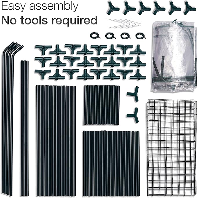 Robust Design for Year-Round Use: Constructed with meticulous attention to detail, our walk-in greenhouse features a roll-up zip panel door for easy access and ventilation, ensuring a stable and controlled environment for your plants. Included are four stakes and four ropes, providing the extra stability needed to withstand all seasons. The structure is made from premium quality 10 mm PE plastic and tube steel, ensuring durability. Its transparent and weather-resistant PE cover allows for maximum sunlight penetration, creating an ideal growing condition throughout the year.