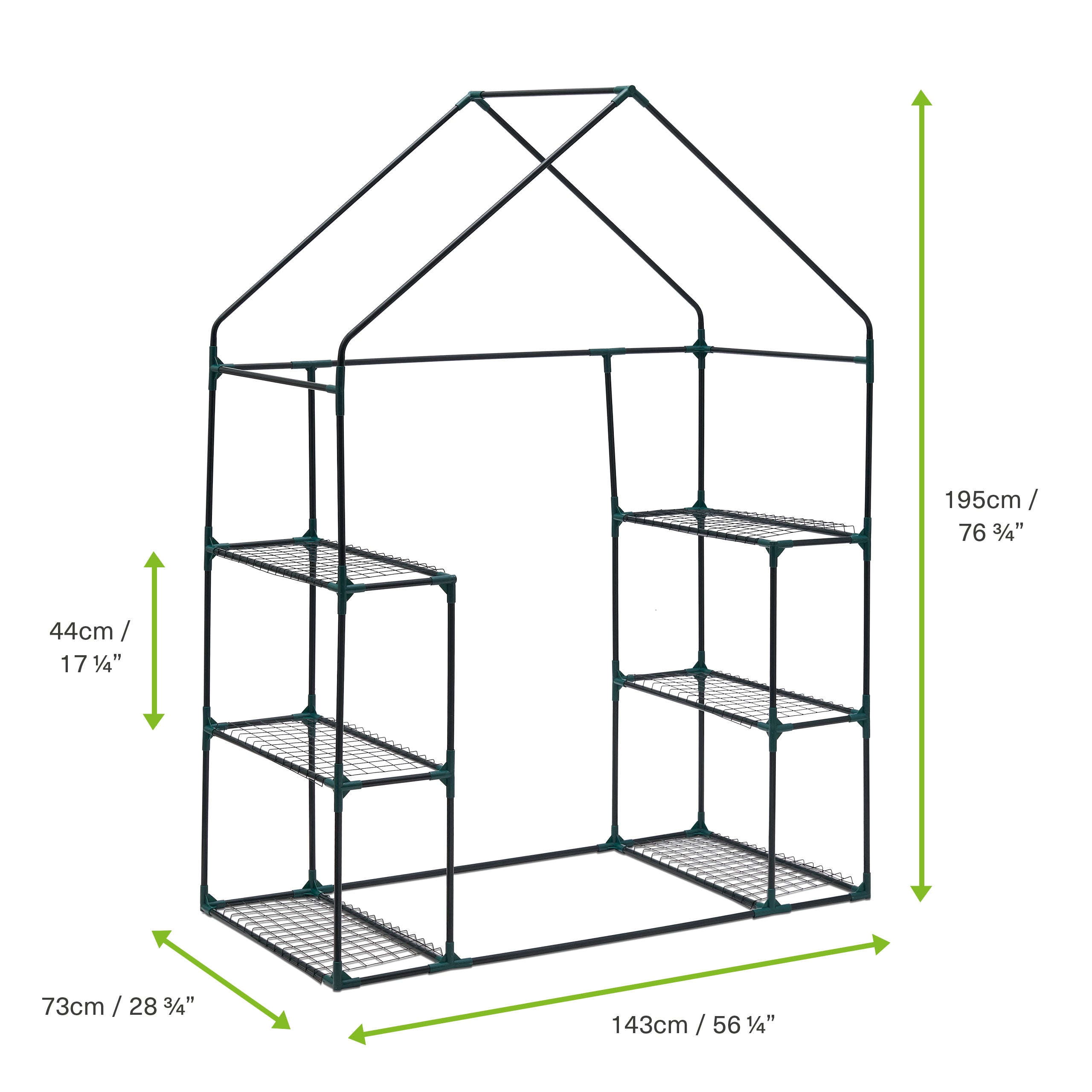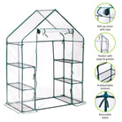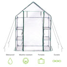 Spacious and Practical: Maximizing your gardening space, this greenhouse comes equipped with six sturdy, removable shelves, each capable of holding up to 8kg. This generous capacity allows for an organized display of plant pots and trays, offering ample space for a wide range of gardening projects. The spacious design ensures that you can walk in comfortably, making plant care a pleasant and efficient task. Whether you're propagating seedlings, cultivating exotic flowers, or growing vegetables, this greenhouse provides the versatile solution you need to achieve your gardening goals.