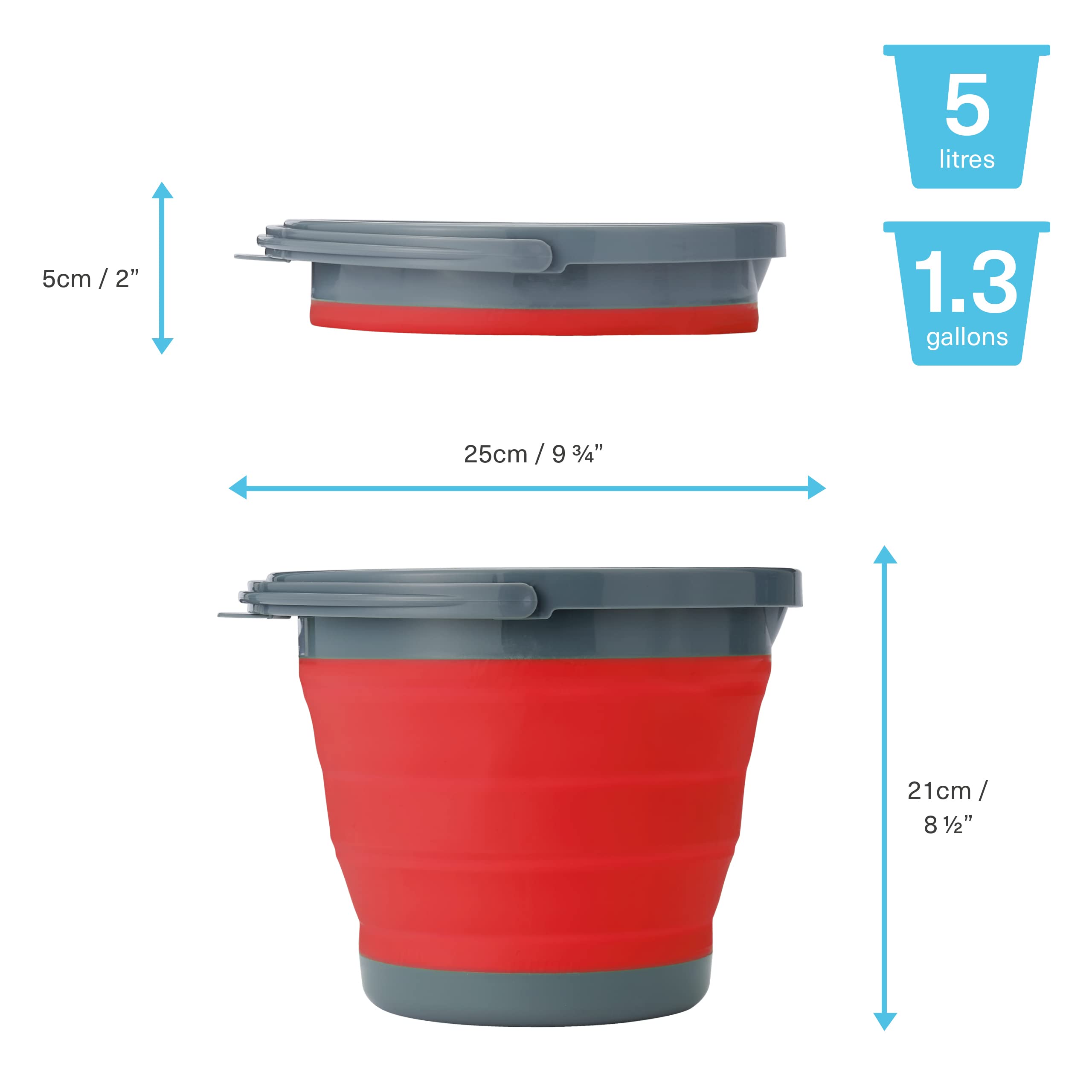 5 Litre Capacity - Not only are our collapsible buckets multi-functional and convenient for storage, but they also hold up to 5 litres of liquid each.