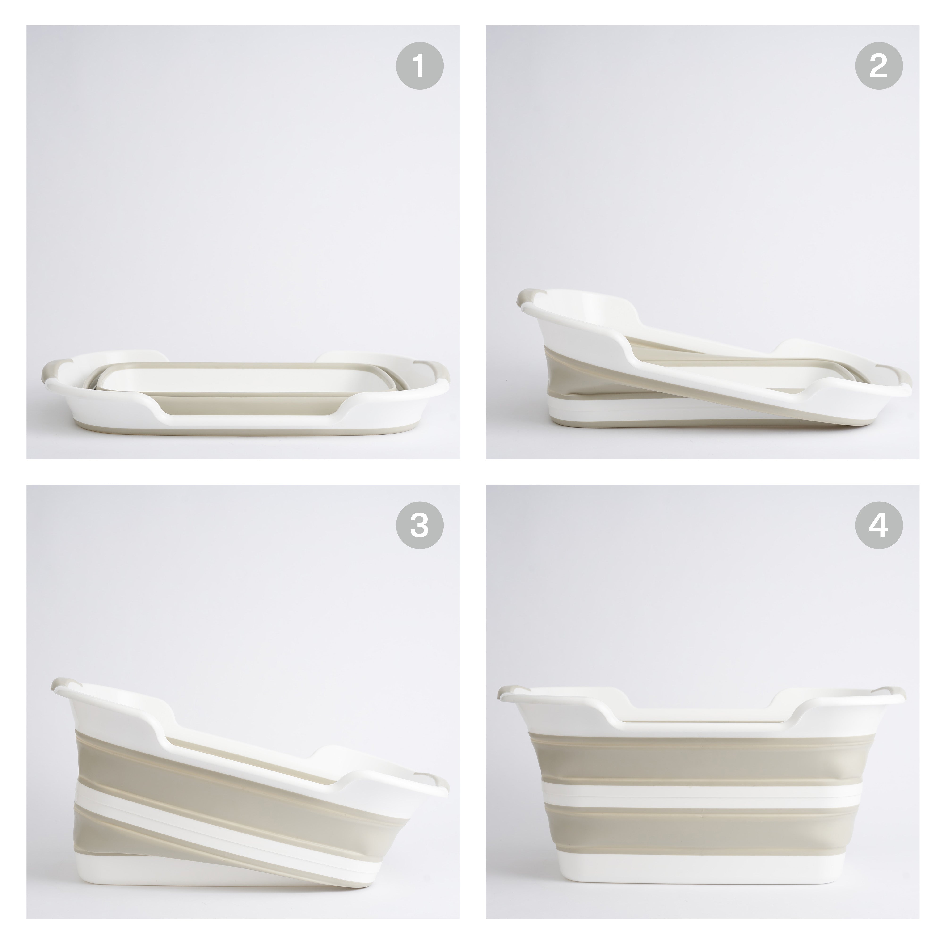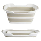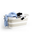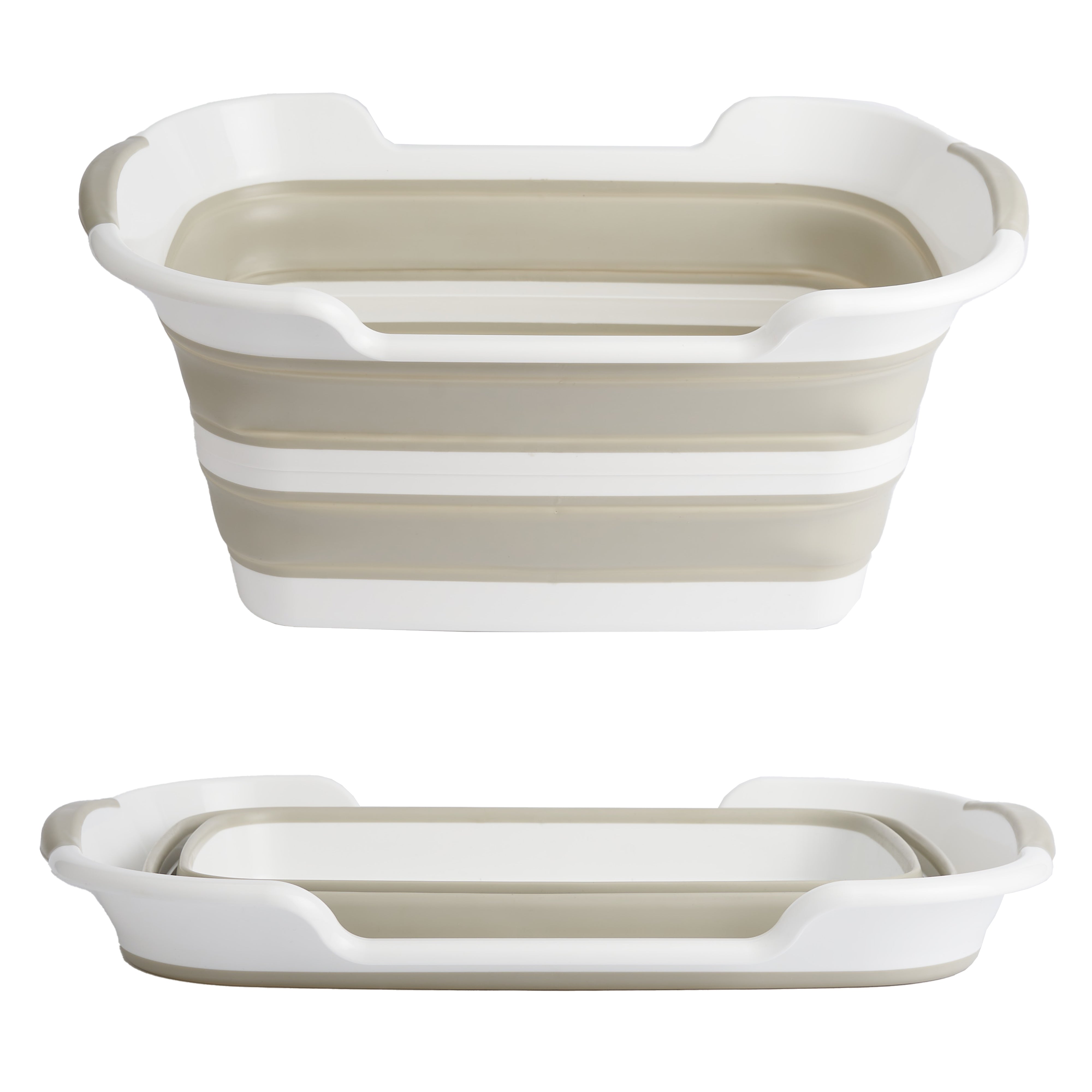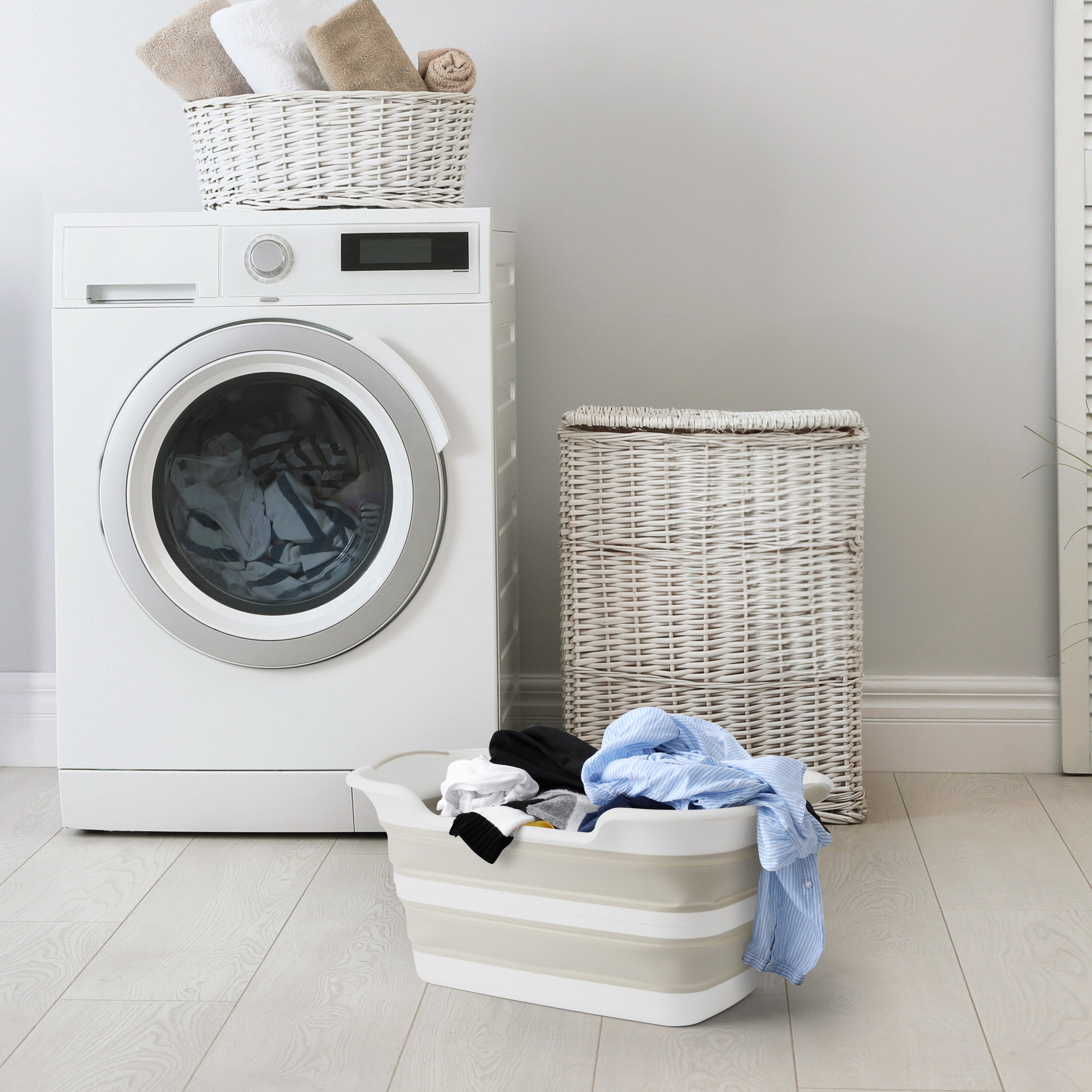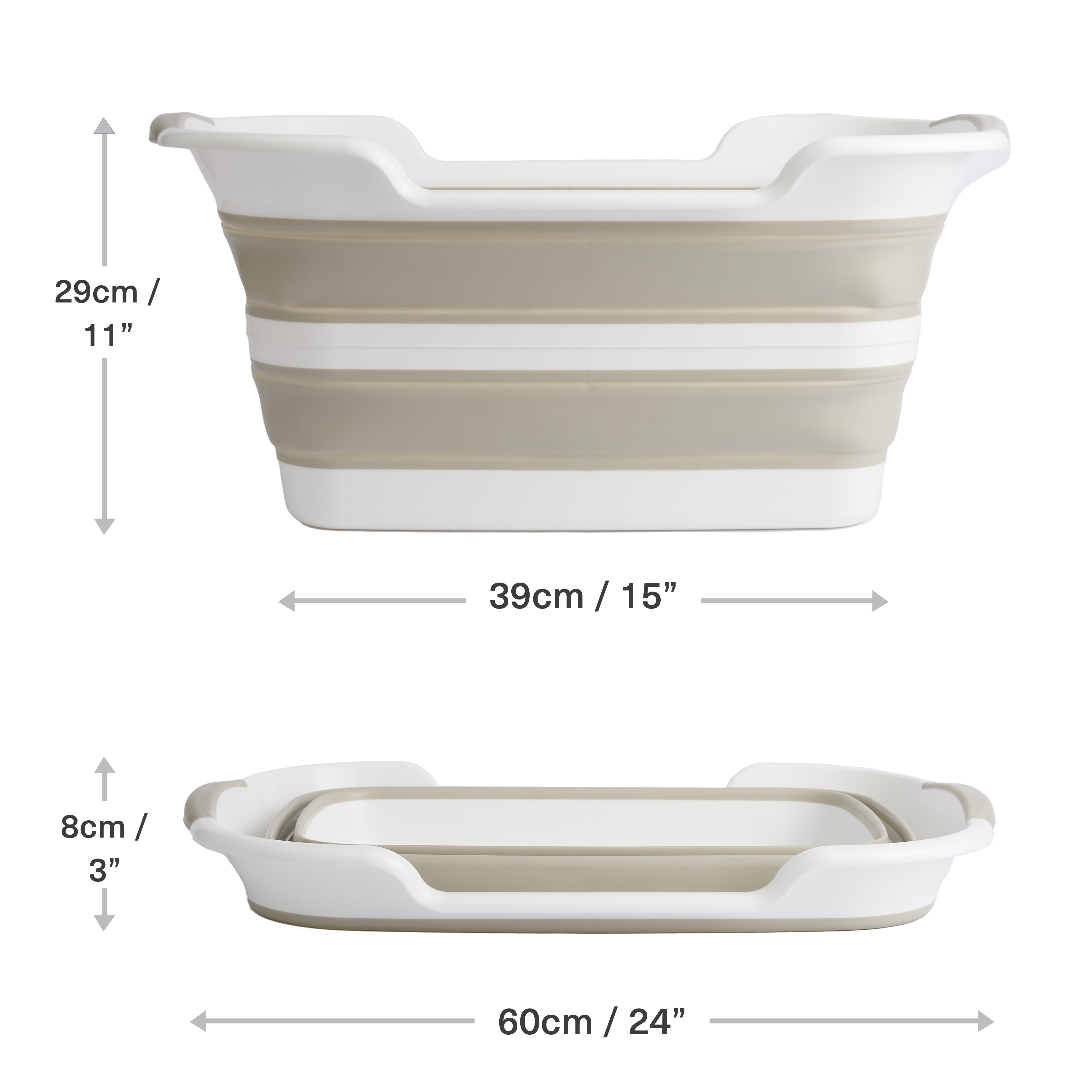 Dimensions – 60cm x 40cm x 27cm - (7cm when folded). Large 27 litre capacity for holding lots of clean or dirty clothes when fully extended. Laundry basket folds down to easily fit between appliances, under beds or on top of cupboards.