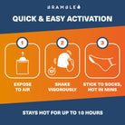 Simple Peel & Stick Activation: Ready to use in moments. Just open the packet, peel off the adhesive backing, and apply it to the outside of your sock for quick, air-activated warmth.
