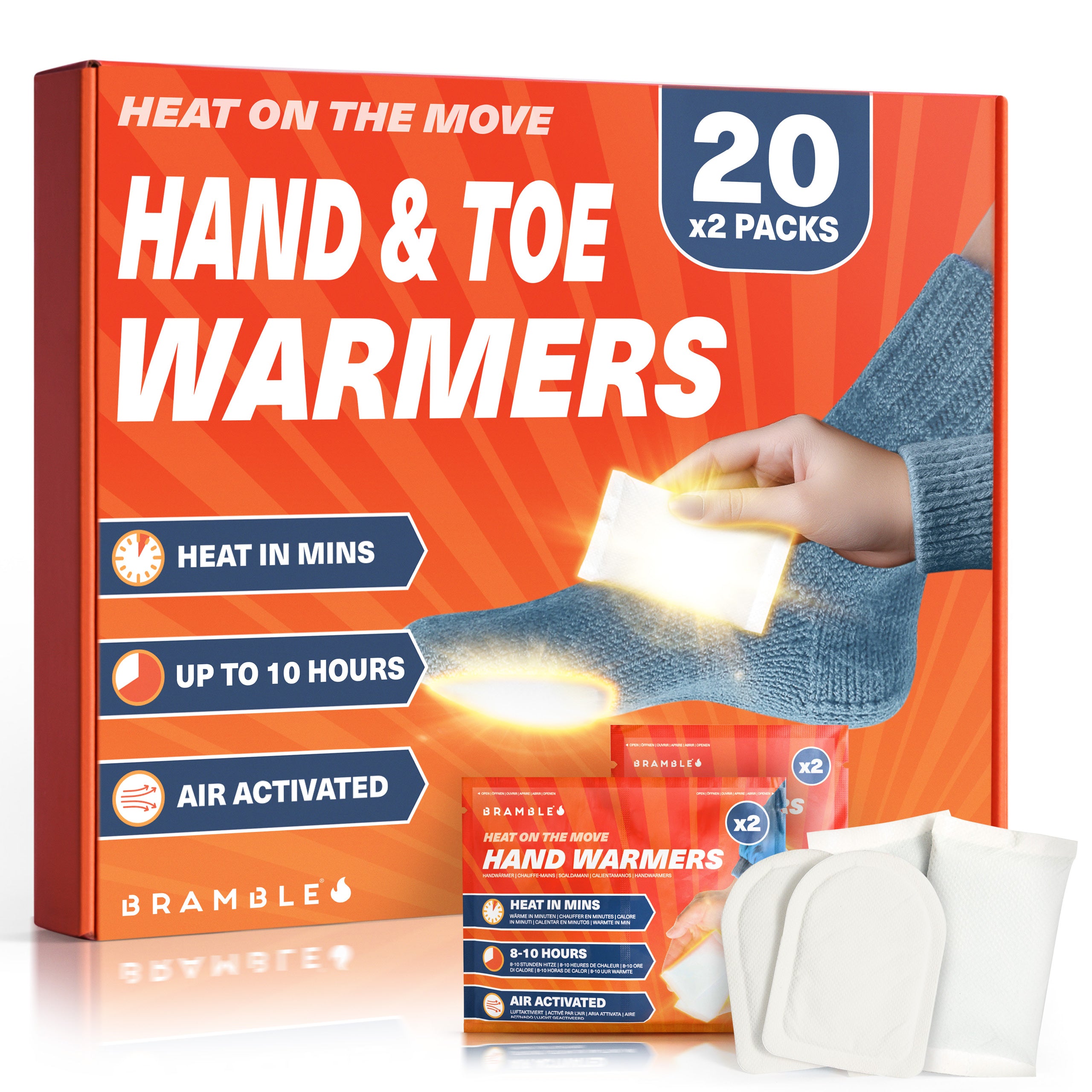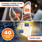 40 Pack: 20x Pairs of Hand Warmers, 20x Pairs of Adhesive Toe Warmers