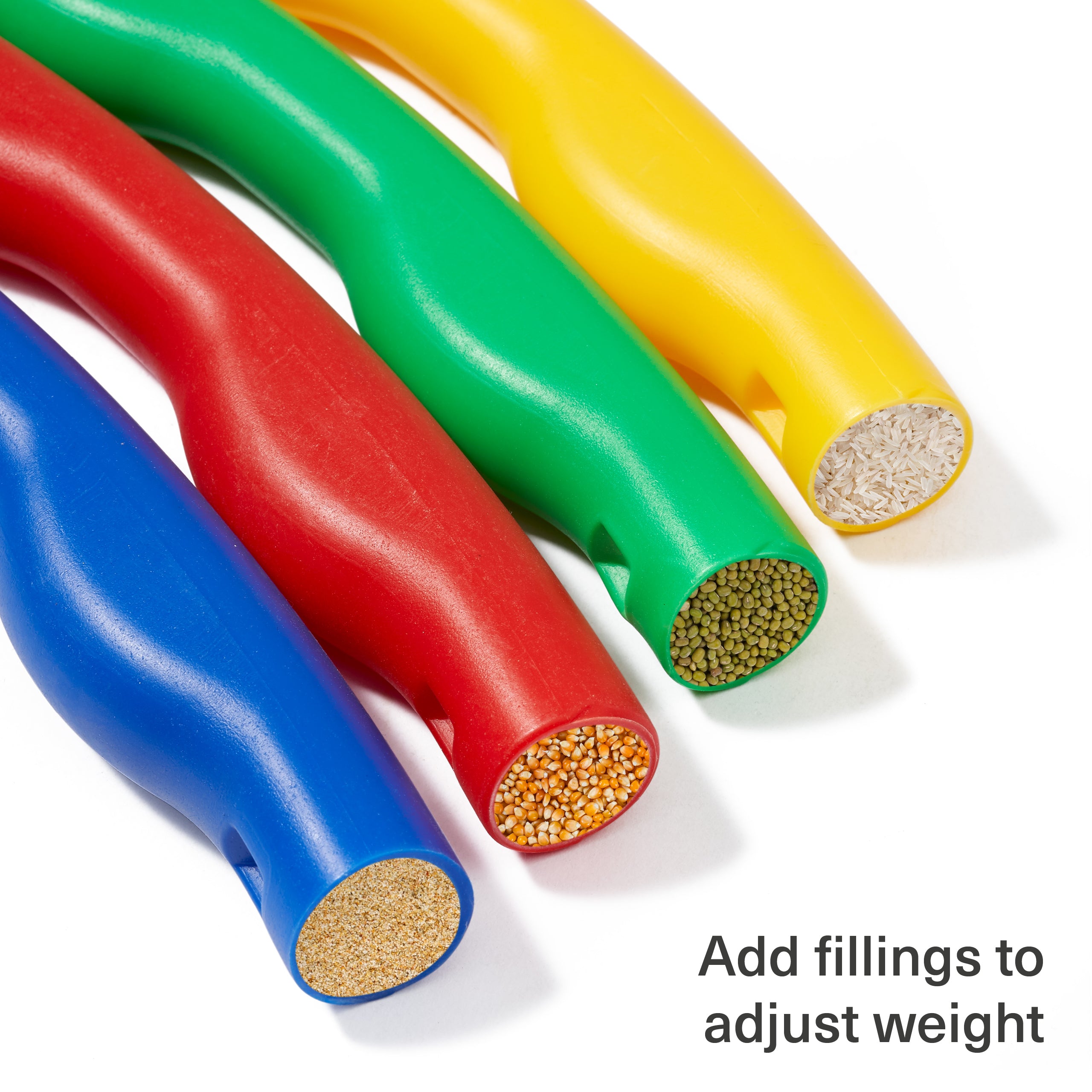 CUSTOMISABLE WEIGHT - Our fitness hula hoops can be filled with sand or stuffing to increase the weight and create the perfect size and weight for the child's size and skill level.